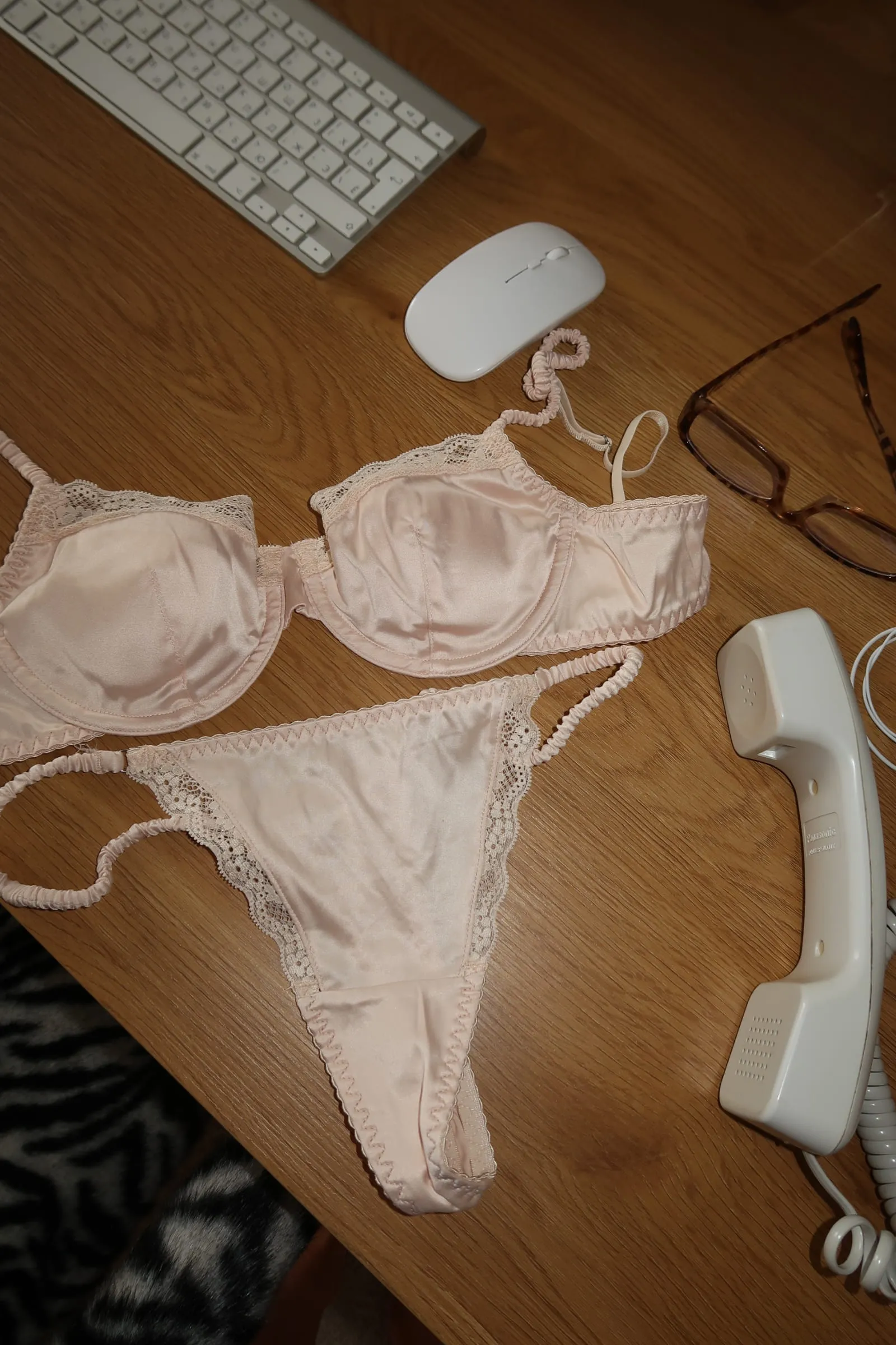 Сатинові стрінги з делікатним мереживом — легкі, майже невагомі на тілі. Акуратна посадка підкреслює силует, не створюючи зайвих ліній під одягом. Ідеально поєднуються з бра, створюючи витончений та гармонійний комплект