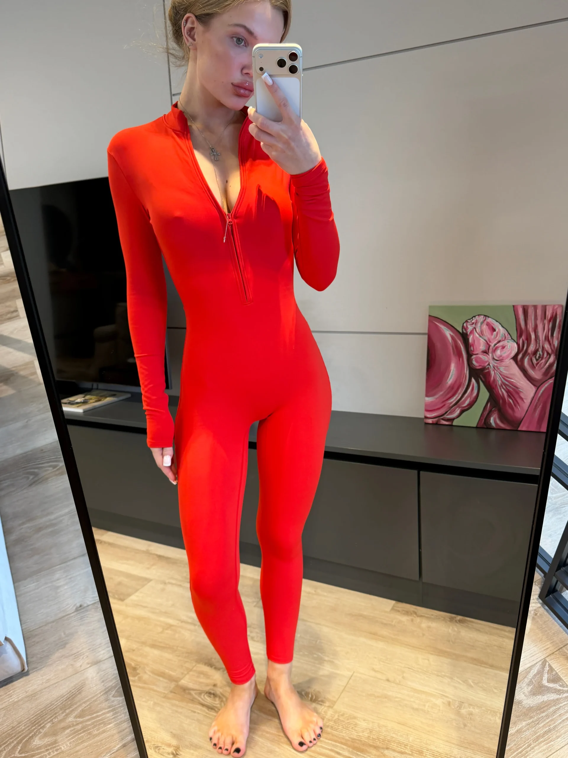 Тонкий мікрокліс делікатно облягає тіло, не утовщує силует і водночас надійно зберігає тепло — комфортно навіть до −12 °C. Матеріал щільно сідає, підкреслює форми та створює бездоганний силует без зайвих ліній.