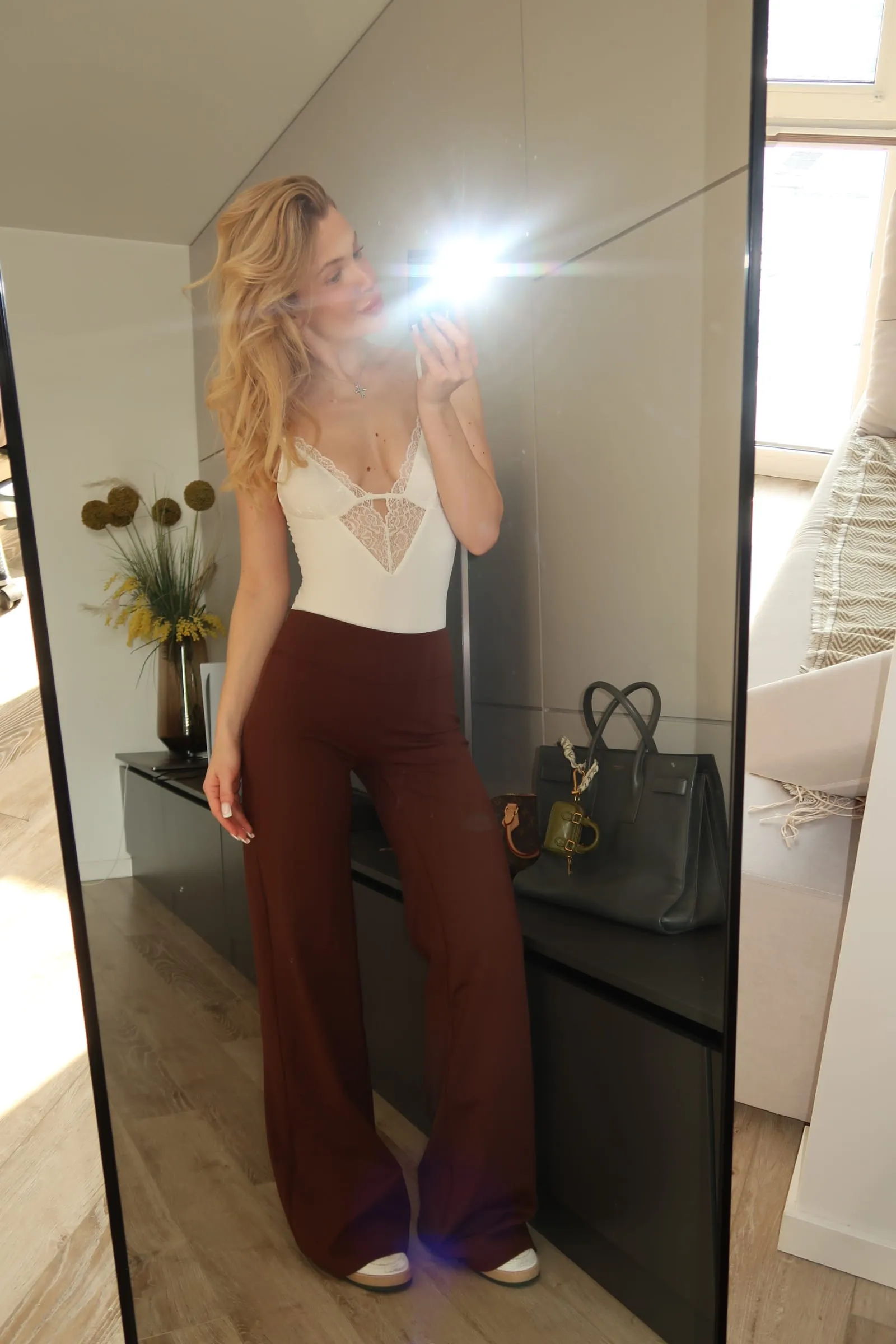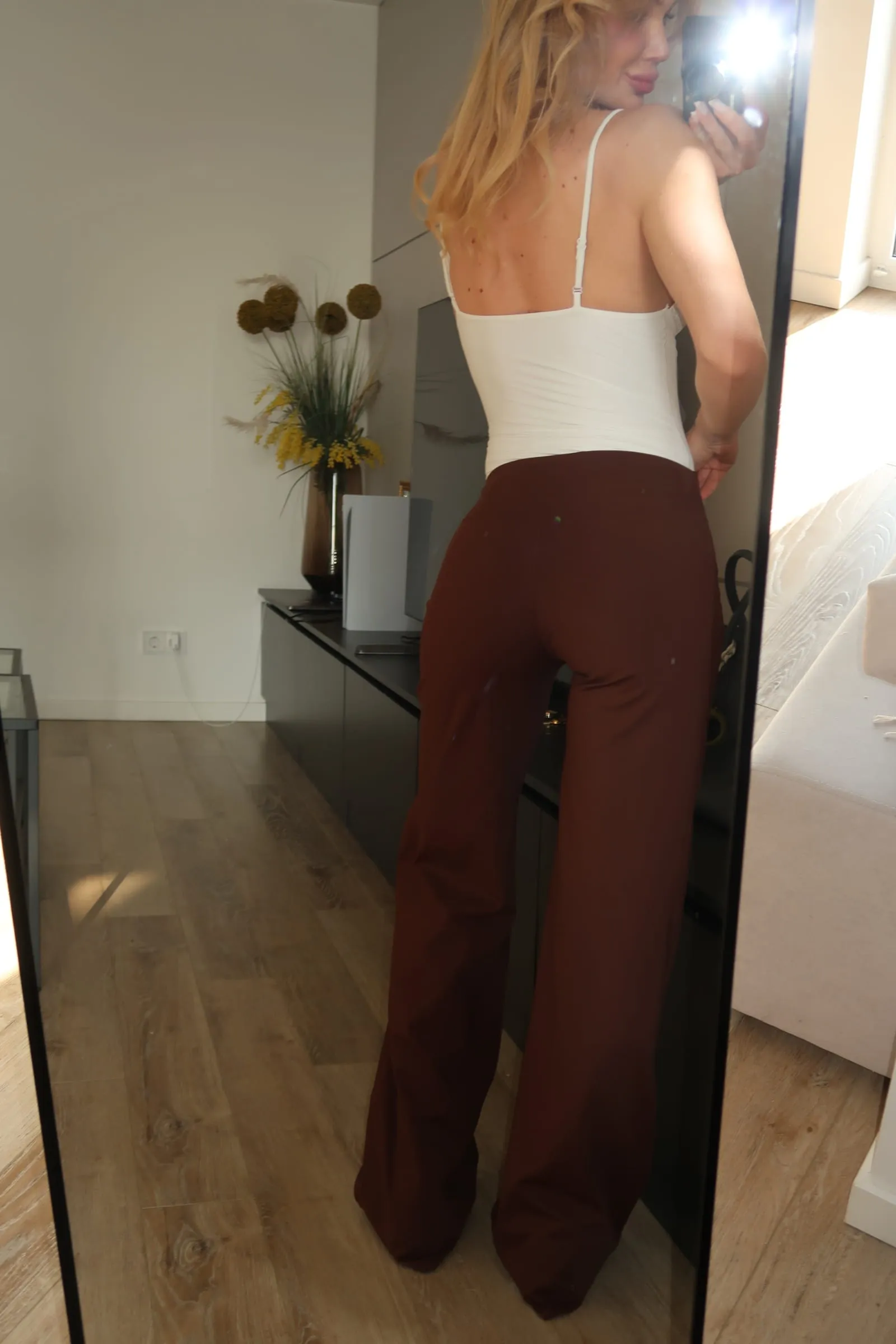 Штани на мікрофлісі — теплі, м’які та нереально комфортні. Кльош додає силуету легкості, а середня посадка та стрейчевий матеріал роблять їх суперзручними на кожен день. Вони ідеально сідають по фігурі, не сковують рухів і дарують відчуття затишку з ранку до вечора.