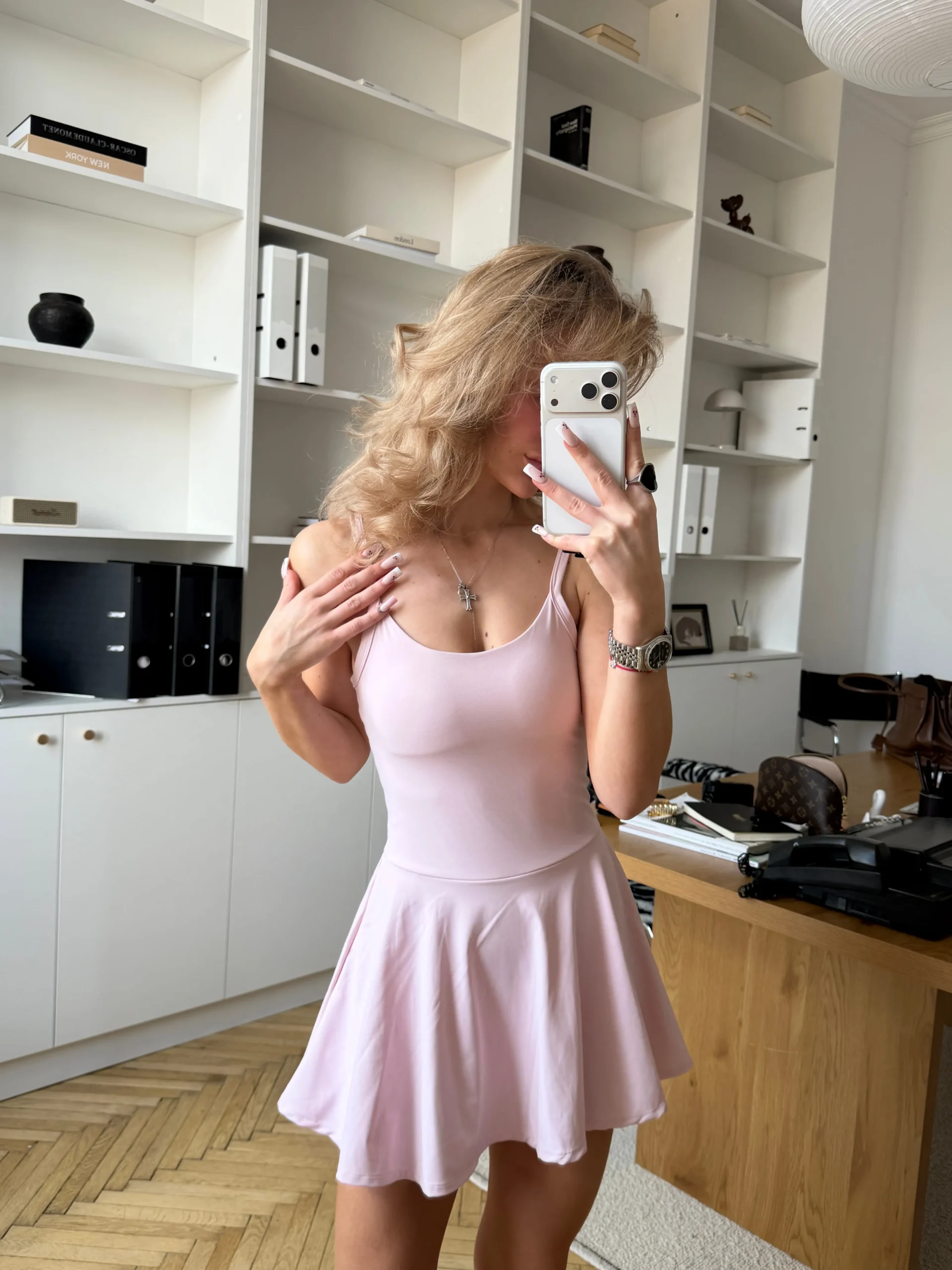 Сукня-комбінезон для тенісу з вшитими шортиками — поєднання комфорту та стилю. Щільний еластичний матеріал утягує, підкреслює фігуру та не просвічує.