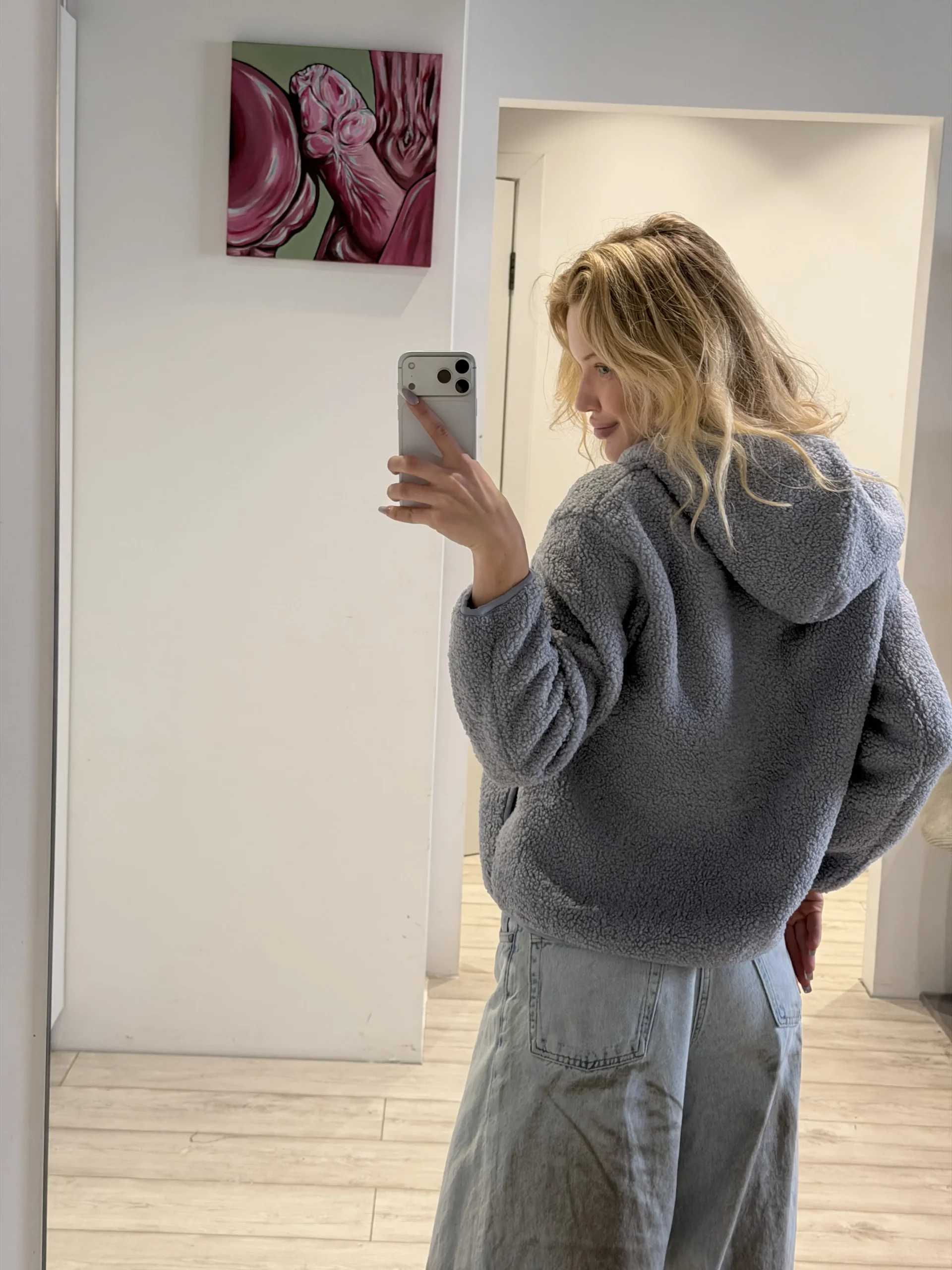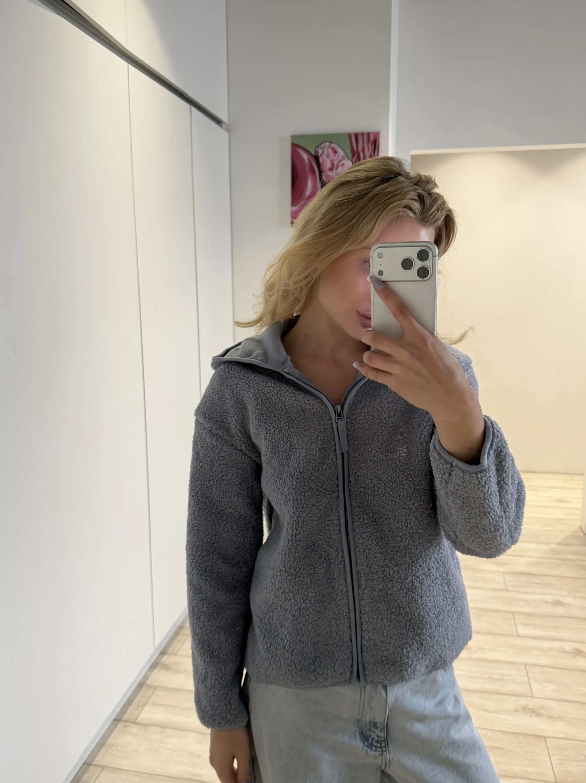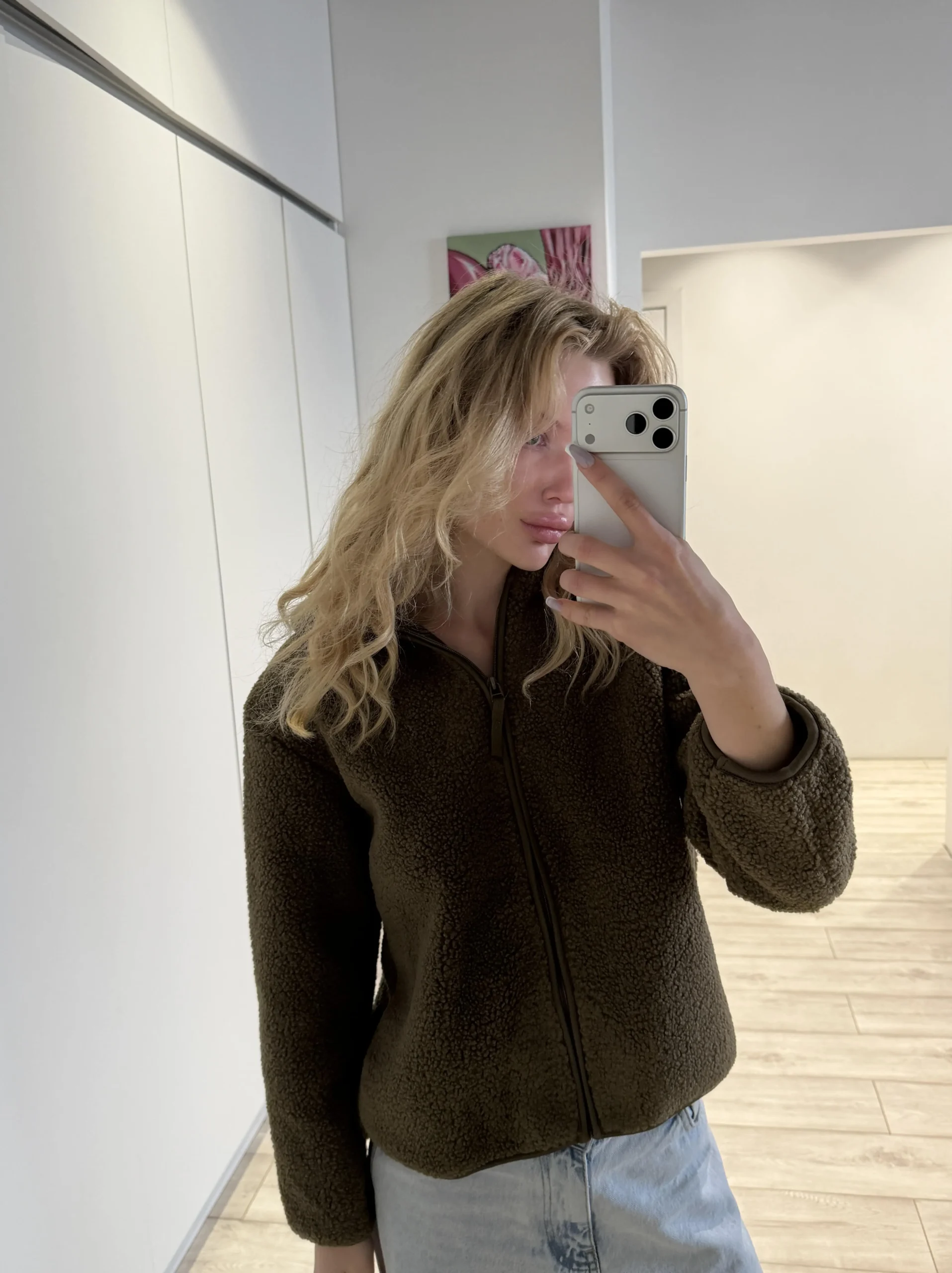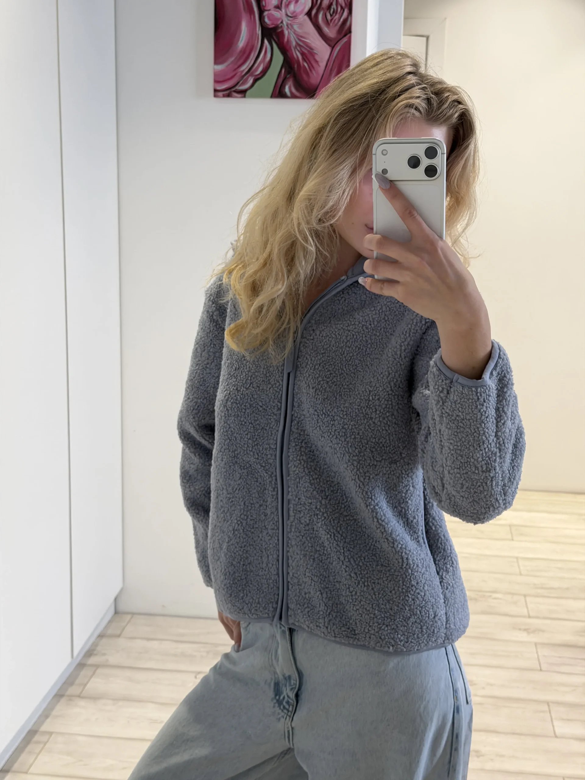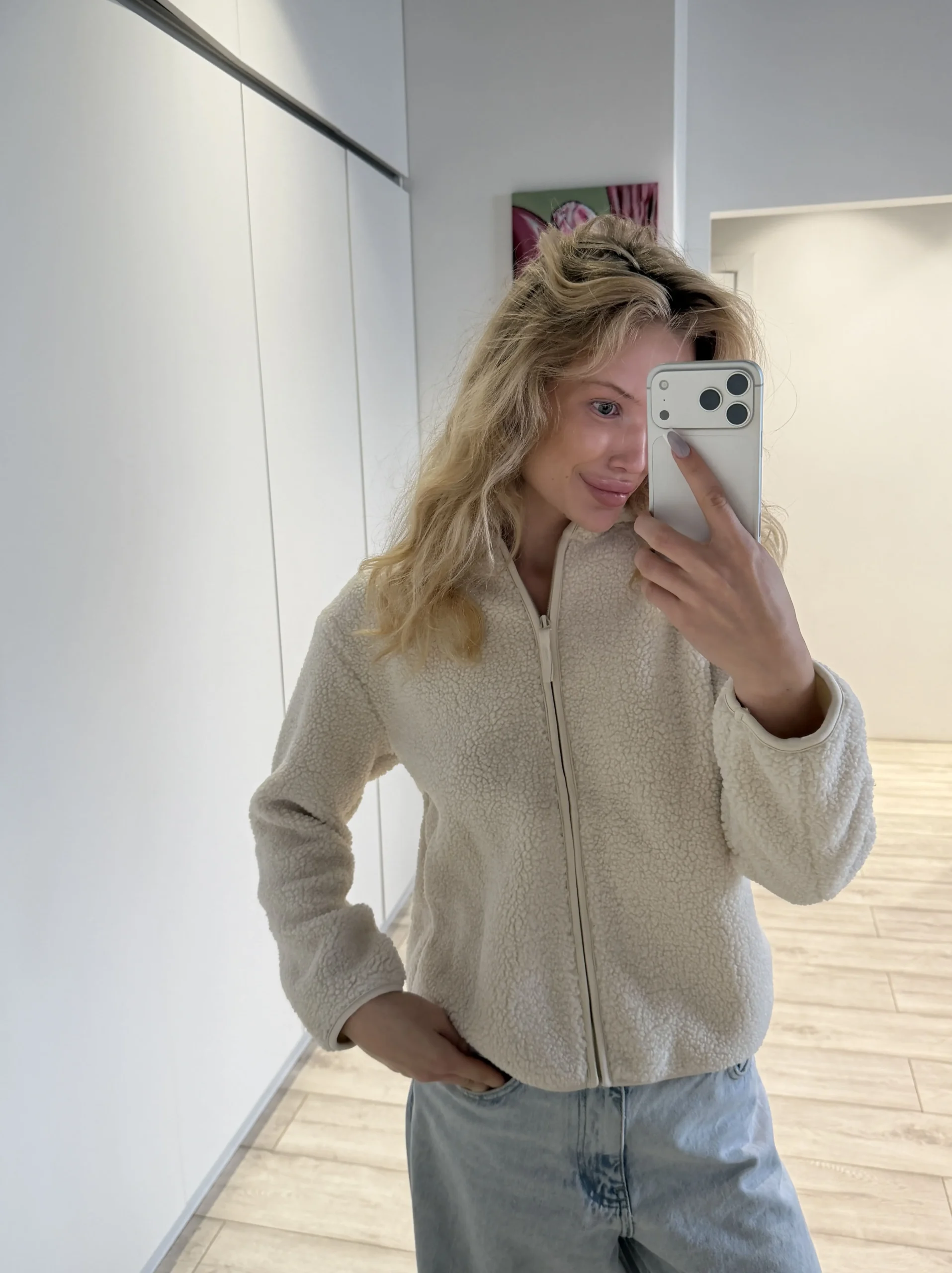об’ємна кофта на блискавці з м’якою імітацією овечої вовни. Дуже затишна, стильна та комфортна на кожен день і для відпочинку. Це твоя універсальна база на зиму. Ідеально поєднується з легінсами, джинсами, спортивками і навіть класичними брюками