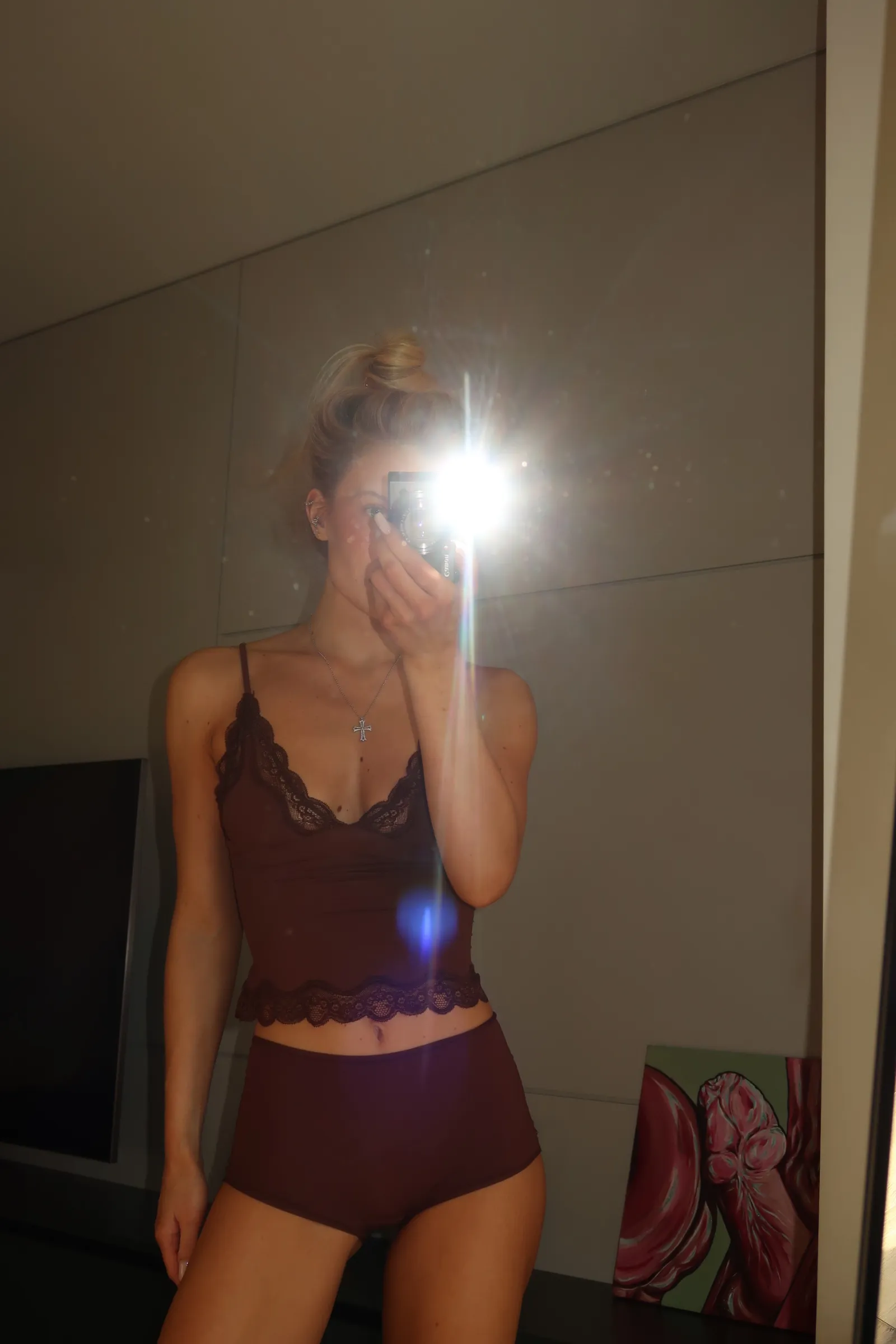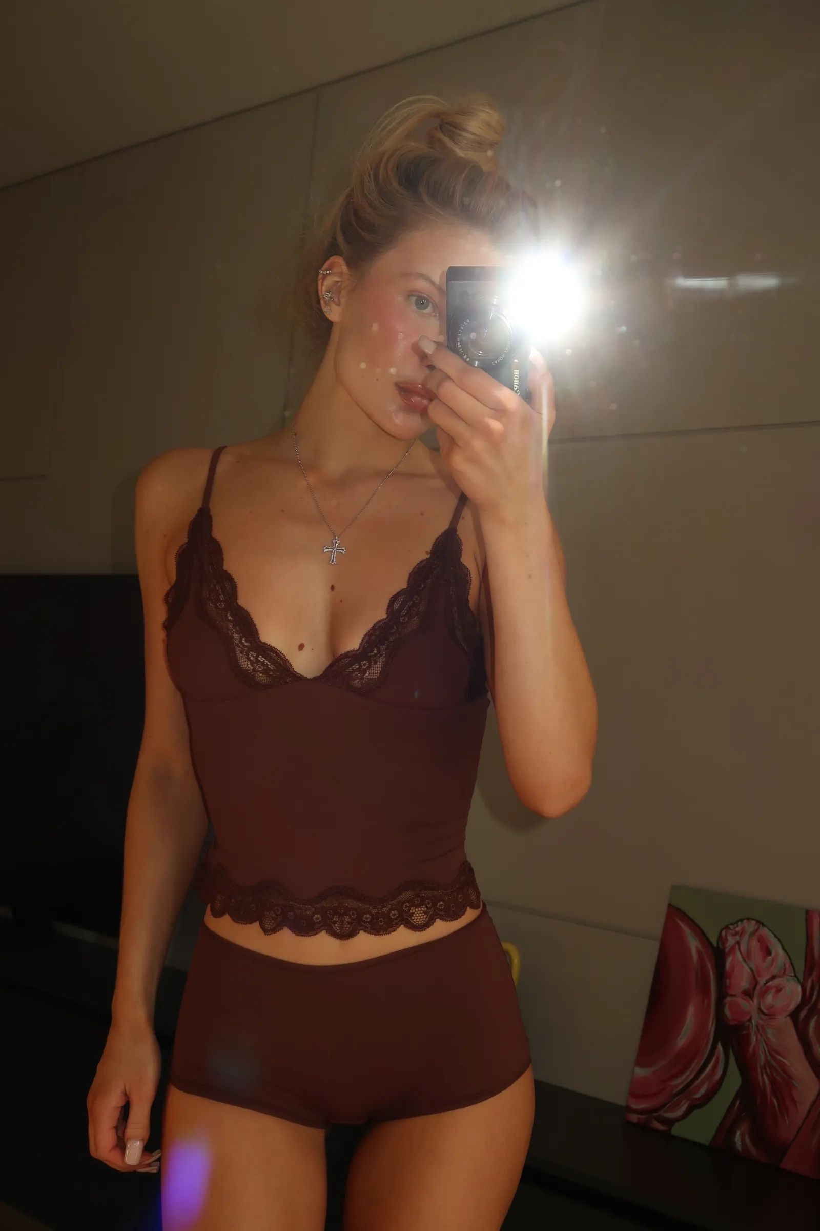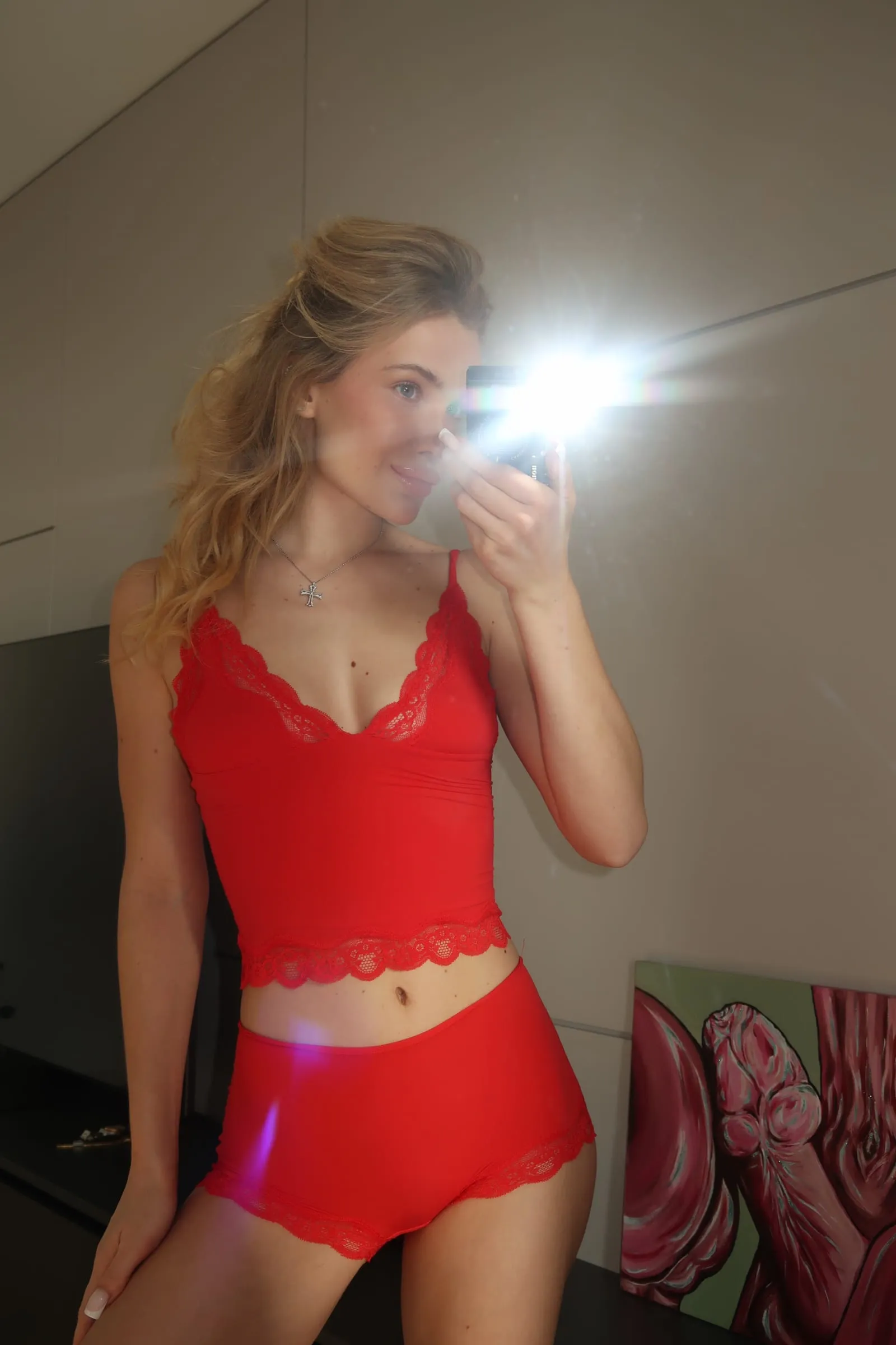Подовжена мереживна майка створена для тих, хто цінує комфорт і жіночність щодня. Вона м’яко облягає тіло, не перетискає та дозволяє почуватися вільно як удома, так і під одягом. Завдяки регульованим бретелям легко підібрати ідеальну посадку, а ніжне мереживо додає витонченості образу. Представлена у двох класичних кольорах – ніжно-рожевому та чорному. Майку можна поєднати з білизною з нашої колекції, обравши стринги або шортики у тон, щоб створити гарний комплект