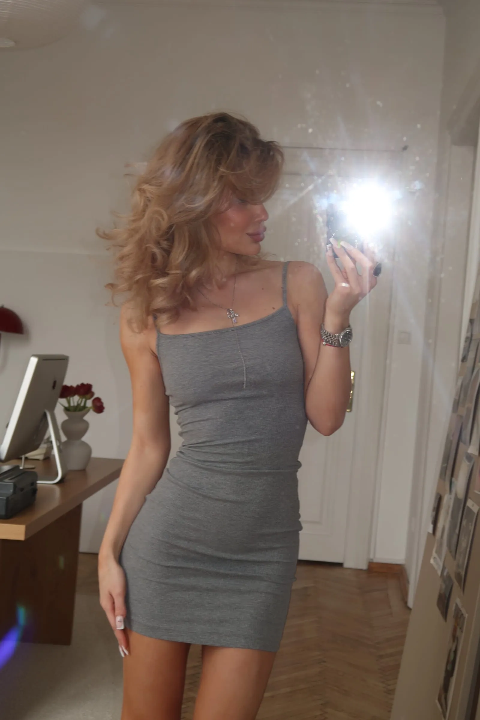 Базова міні-сукня в рубчик, яка ідеально сідає по фігурі та підкреслює силует. Щільний, еластичний матеріал добре тягнеться, але водночас має вагу — завдяки цьому сукня не підстрибує під час руху й тримає форму. Комфортна, лаконічна та універсальна — ідеальна як для щоденних образів, так і для вечора