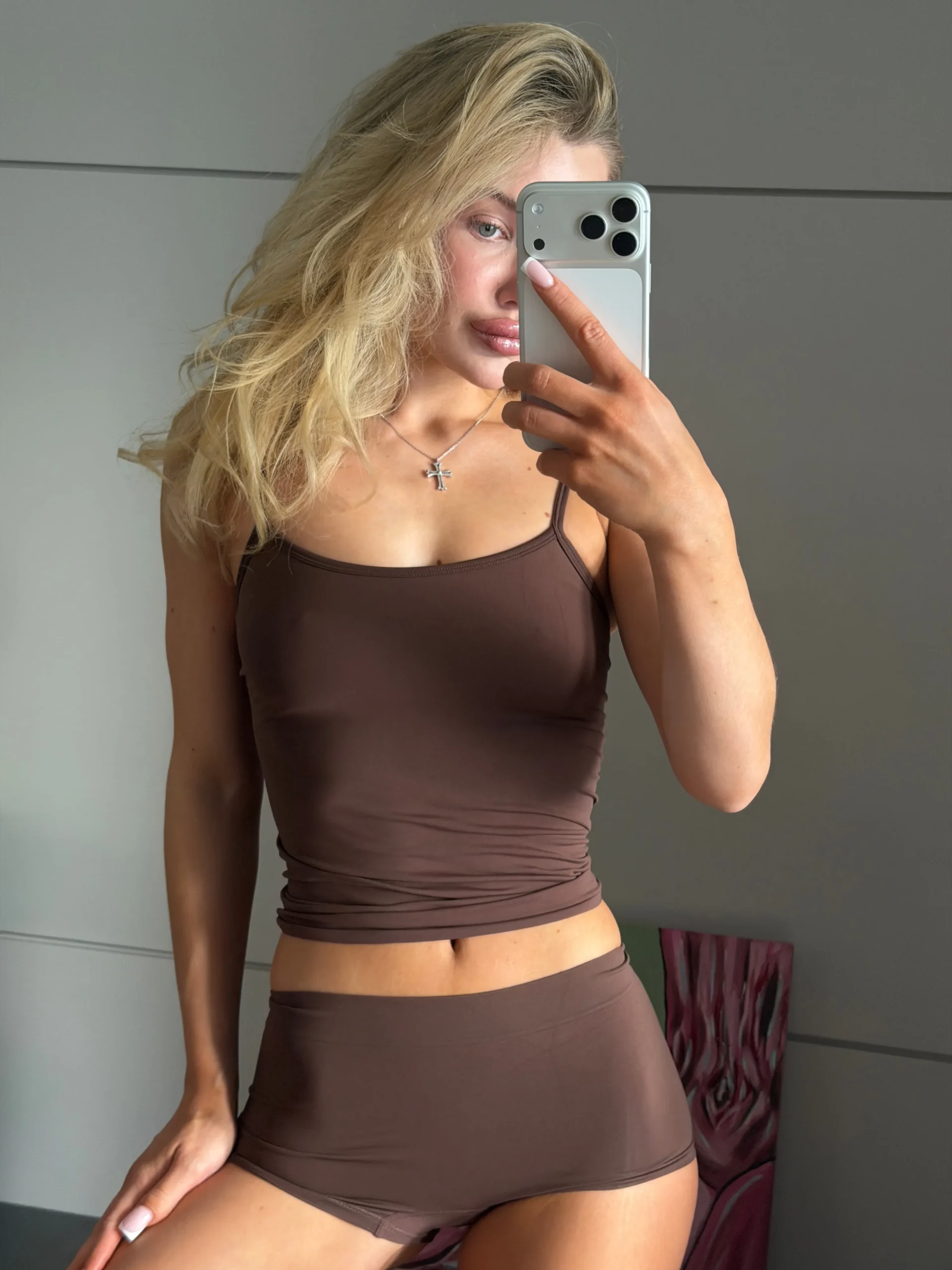 Трусики sporty boy shorts виконані з матеріалу second skin — легкі, невагомі, приємні до тіла та максимально комфортні для щоденного носіння. Не тиснуть, не натирають, не відчуваються під одягом і красиво сідають по фігурі. Представлені в кольорах: морська хвиля, baby pink, молочний, чорний, коричневий. До них можна підібрати майку в тон і створити стильний домашній сет або доповнити образом топом — для готового комплекту на кожен день